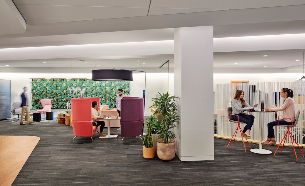 Ngoài yếu tố tăng hiệu quả và năng suất làm việc, yếu tố lâu dài mà các doanh nghiệp cần chú ý đến khi tìm kiếm văn phòng cho thuê hay xây dựng văn phòng riêng biệt, đó là sự tương tác của nhân viên. Tâm trạng và sự gắn kết của con người bị tác động bởi chính môi trường xung quanh: từ không gian công sở, ánh sáng, không khí… Trong báo cáo của Steelcase về “Sự gắn kết và nơi làm việc trên phạm vi toàn cầu”, với hơn 12.000 người tham gia từ 17 quốc gia, sự gắn bó của nhân viên với công ty, với bạn bè đồng nghiệp có tỷ lệ thuận sự hài lòng đối với văn phòng làm việc. Đó là lý do những thiết kế hiện đại luôn chú trọng tạo điều kiện để mọi người có thể giao tiếp dễ dàng hơn.
